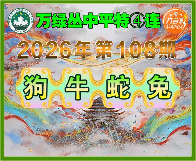 108期: ☘️『万绿丛中』 ☘️平特④连☘️【狗牛蛇兔】开:狗45,牛06,蛇26,兔40