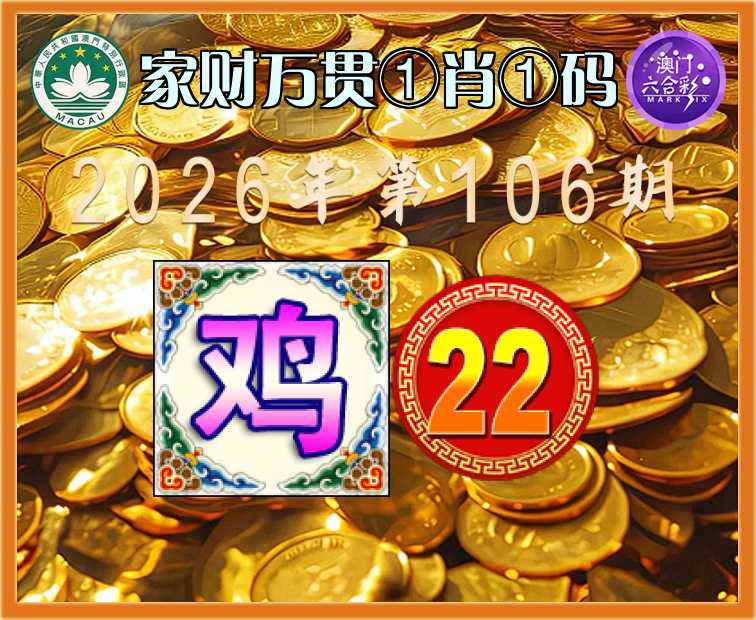 106期:【家财万贯】 🧏‍♀️①肖①码🧏‍♀️【】【22】开:鸡22