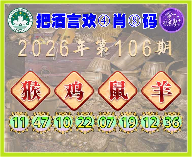 106期:【把酒言欢】 🥰④肖⑧码🥰【猴鼠羊】开:鸡22