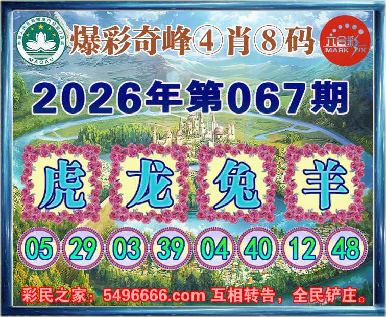067期:《爆彩奇峰》 🍟④肖⑧码🍟【龙兔羊】开:虎05